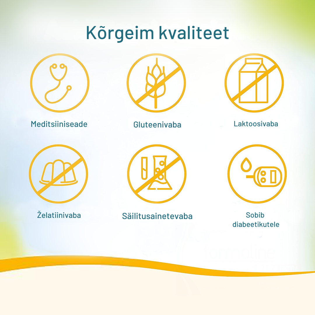 Formoline L112 EXTRA ei sisalda säilitusaineid ega värvaineid. See ei sisalda gluteeni, maitsetugevdajaid, laktoosi, piimavalke ega želatiini. See sobib ka diabeetikutele, kuna toode ei sisalda imenduvaid süsivesikuid.