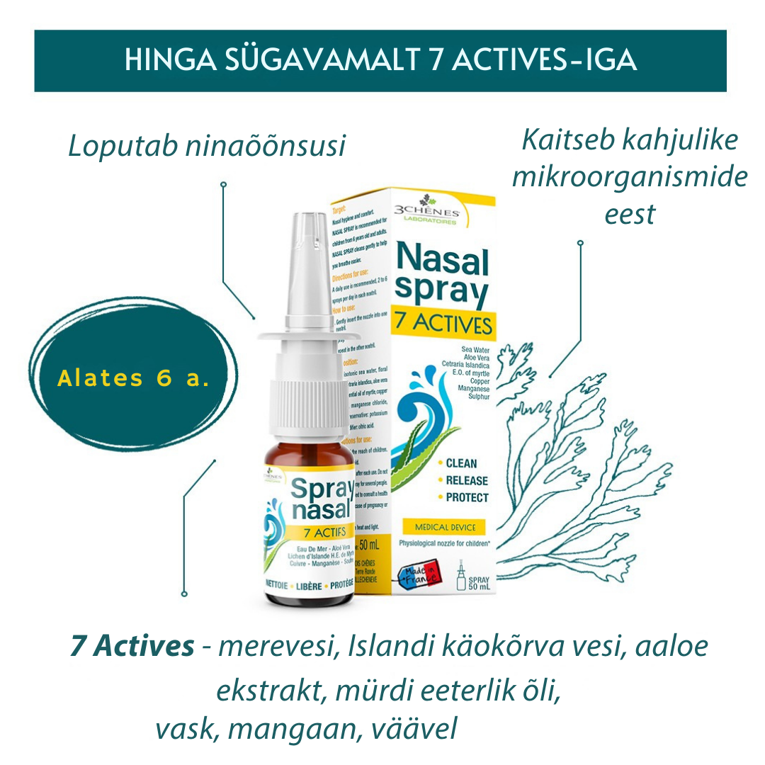 Innovatiivne meditsiiniseade, mis põhineb 7 toimeaine sünergial. Sprei puhastab õrnalt, vabastab hingamist ja kaitseb ninaõõnesid.