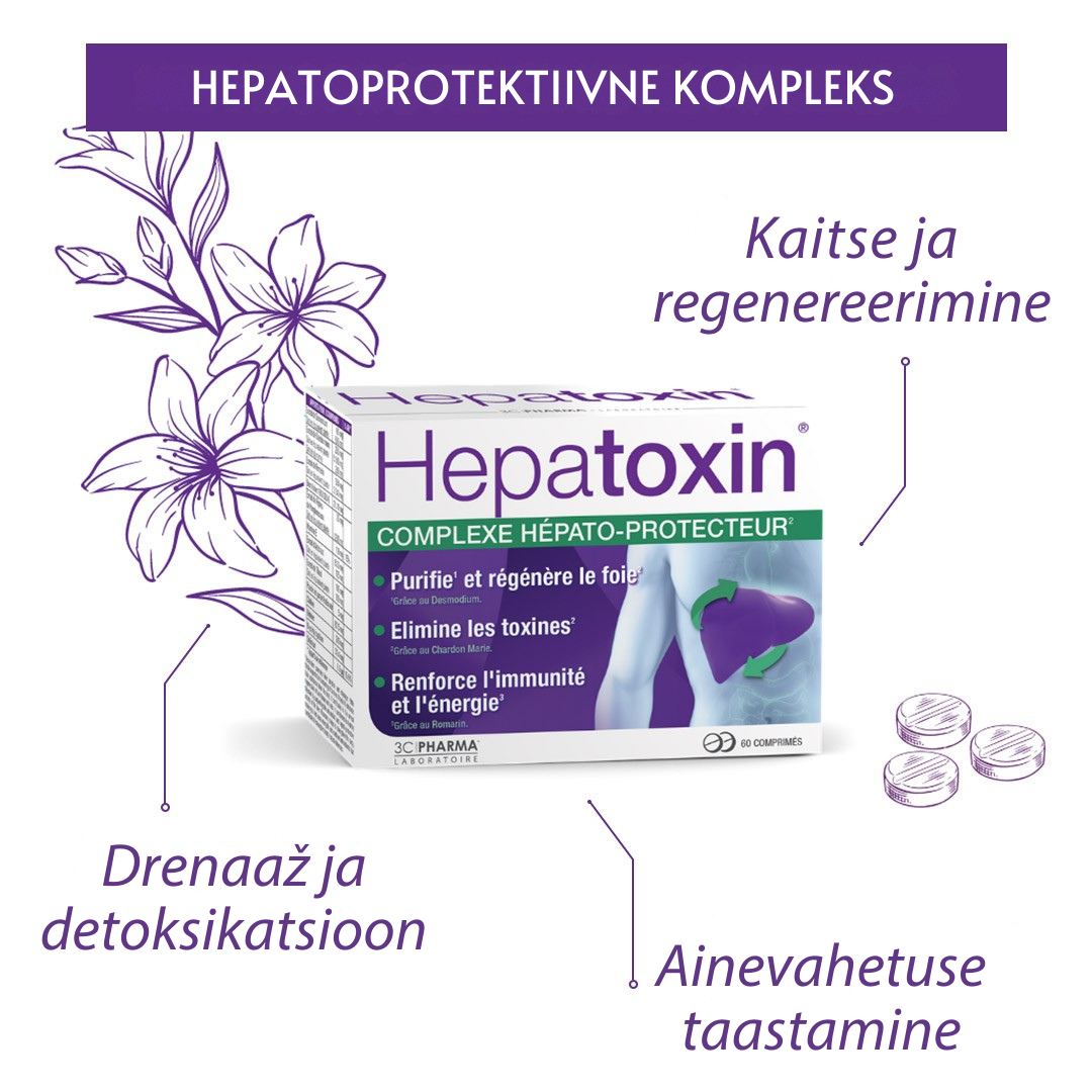 E-VITAMIIN ja SELEEN aitavad kaitsta rakke oksüdatiivsete kahjustuste eest. Hepatoksiini saab kasutada abivahendina maksa talitlushäirete korral, mis on põhjustatud ravimite, alkoholi, rasvaste või töödeldud toitude liigsest tarbimisest.