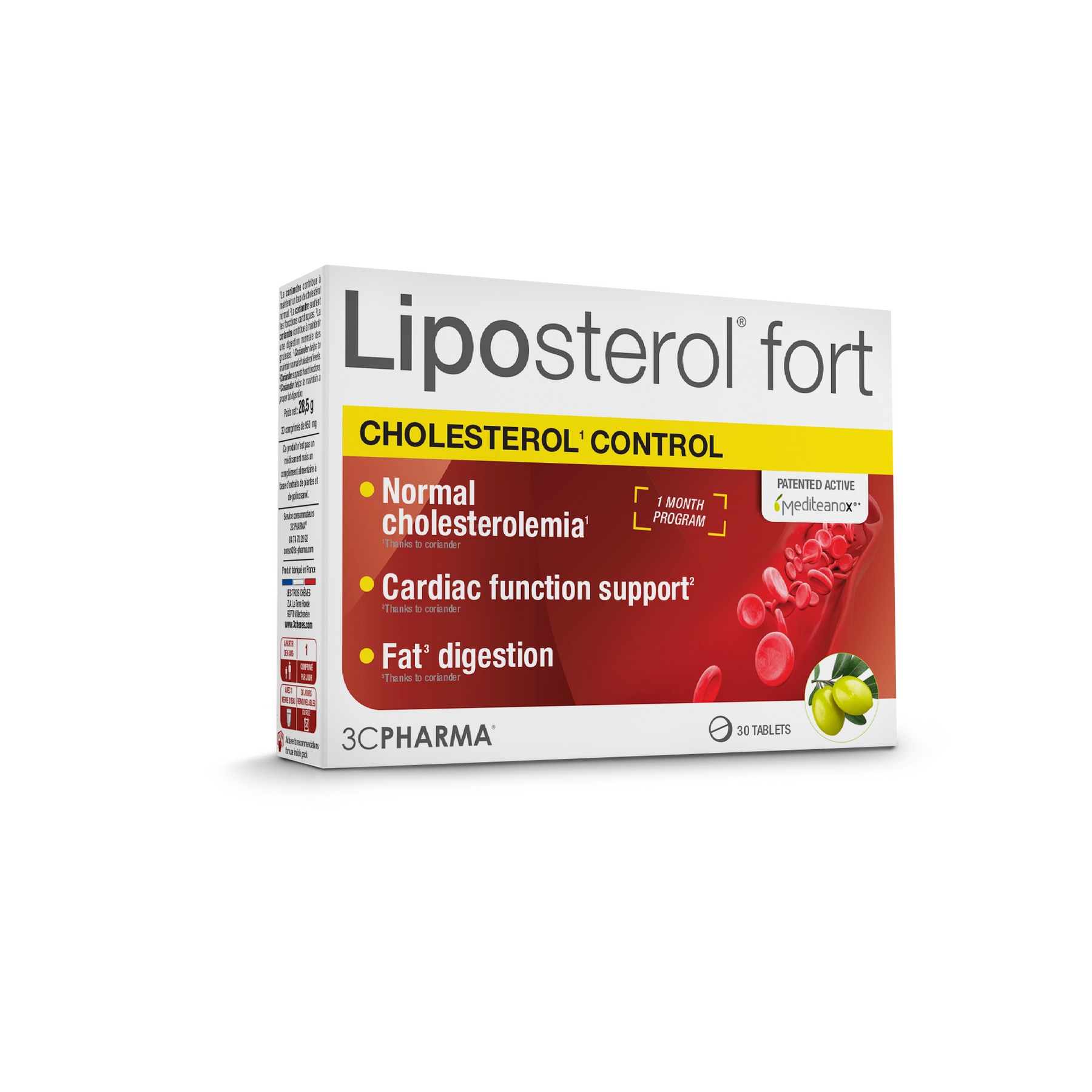 3C PHARMA Liposterol Fort on toidulisand, mis aitab säilitada normaalset vere kolesteroolitaset, südame-veresoonkonna funktsiooni ja rasvade ainevahetust. Koostisainete hulka kuuluvad koriandri ja bergamoti ekstraktid ning oliiviõli polüfenoolid, mis aitavad säilitada normaalset lipiidide ainevahetust ja kaitsta rakke oksüdatiivsete kahjustuste eest.