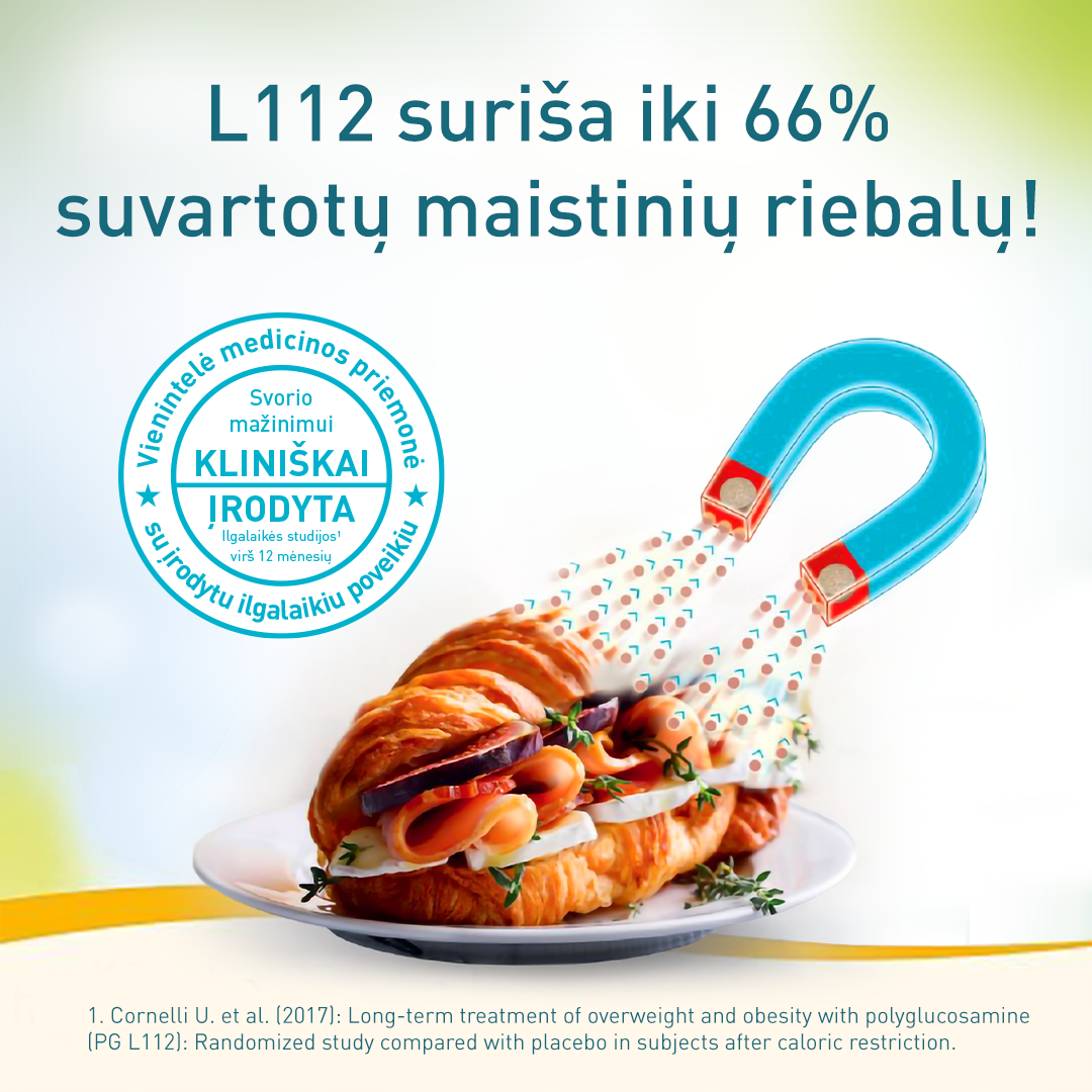 Formoline L112 EXTRA vähendab lipiidide seeditavust, sidudes neid füüsiliselt, vähendades seeläbi kalorite tarbimist. Selle tulemusena aitab see kaalu langetada, kaotatud kaalu säilitada ja LDL-kolesterooli taset langetada.